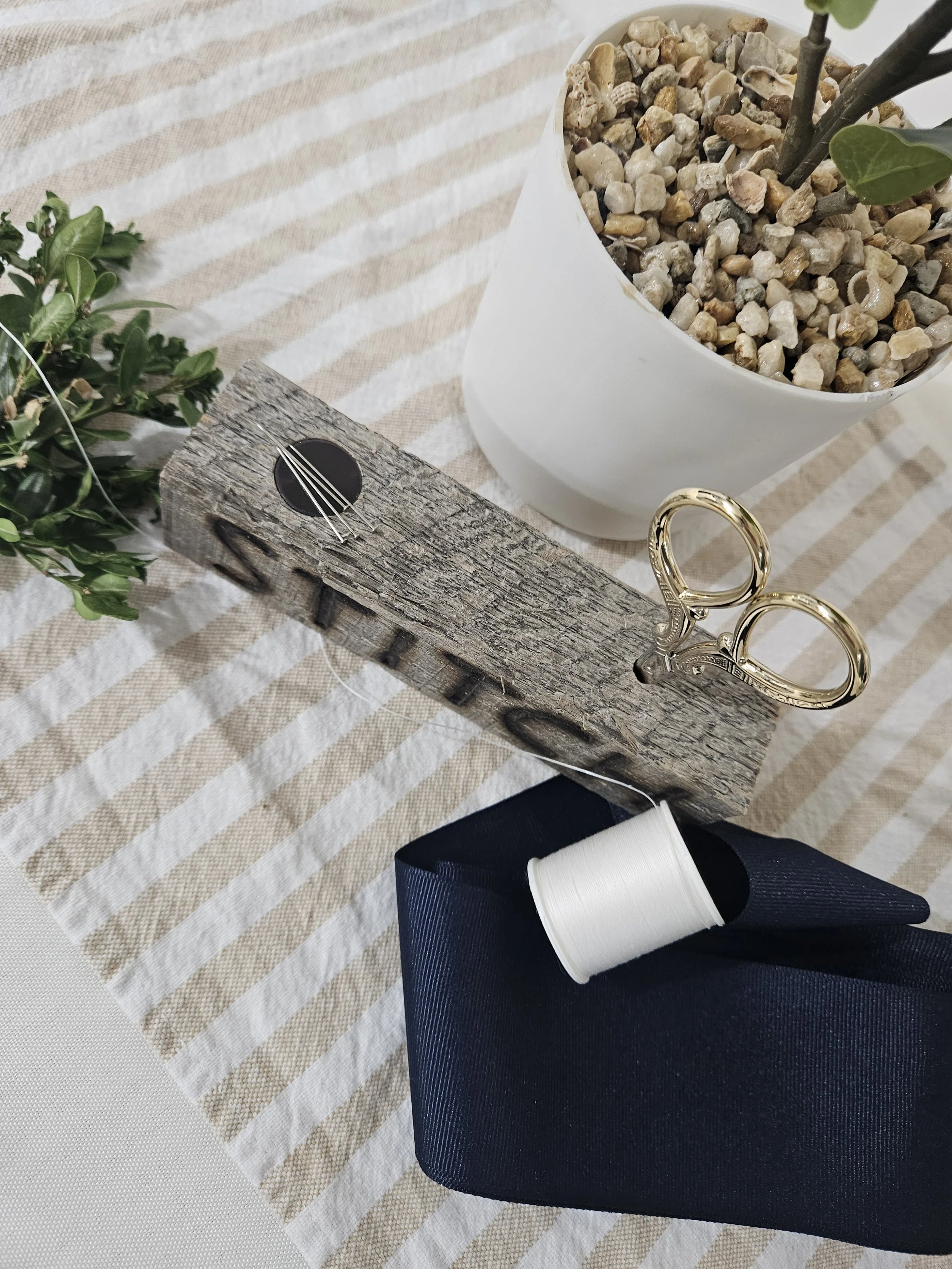 Elevate your sewing corner with this handcrafted block. Made from authentic weathered wood, it perfectly balances rustic charm with practical, high-end utility.